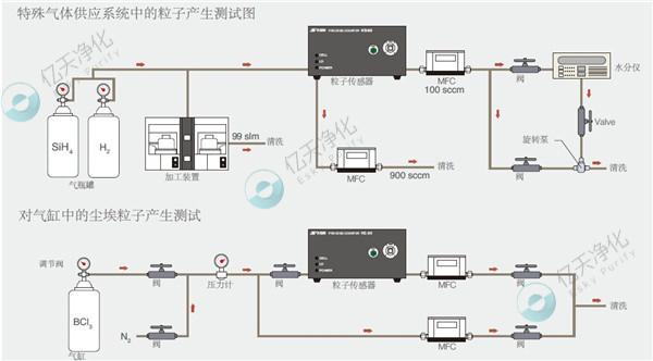 使用在半導體、平板顯示器、太陽能電池和其他行業的產品處理中的許多原材料氣體是有毒、易燃、腐蝕性和活躍性的。比如這些氣體會和水汽發生反應從而輕易產生顆粒物。控制這些反應從而抑制粒子在特殊氣體中的污染是很有必要的。