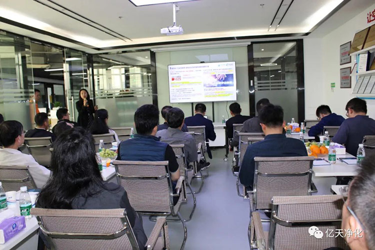 會議第二天,《工業潔凈室通用規范》編制組專家團隊一行,在億天公司總經理夏群艷女士的陪同下實地考察了億天凈化公司的潔凈生產車間和綜合性實驗室,現場聽取夏群艷總經理關于潔凈室方案介紹,并就數字化潔凈室解決方案、潔凈行業的標準化、規范化等議題展開研討。夏總同時介紹億天公司的發展歷程和技術成果,億天堅持空氣凈化行業18余年,與國際領先的環境檢測儀器公司合作,并積極投入自主技術研發和產品創新,目前掌握的凈化技術及可溯源污染物的檢測手段等方面均處于行業領先水平。專家組一行對億天公司緊緊圍繞空氣環境檢測、治理、監測閉環的管理,積極參與標準制定工作,助潔凈行業發展給予了高度評價,億天凈化的數字化工業潔凈室方案也給《工業潔凈室通用規范》的編制工作提供了非常有價值的實際案例參考。